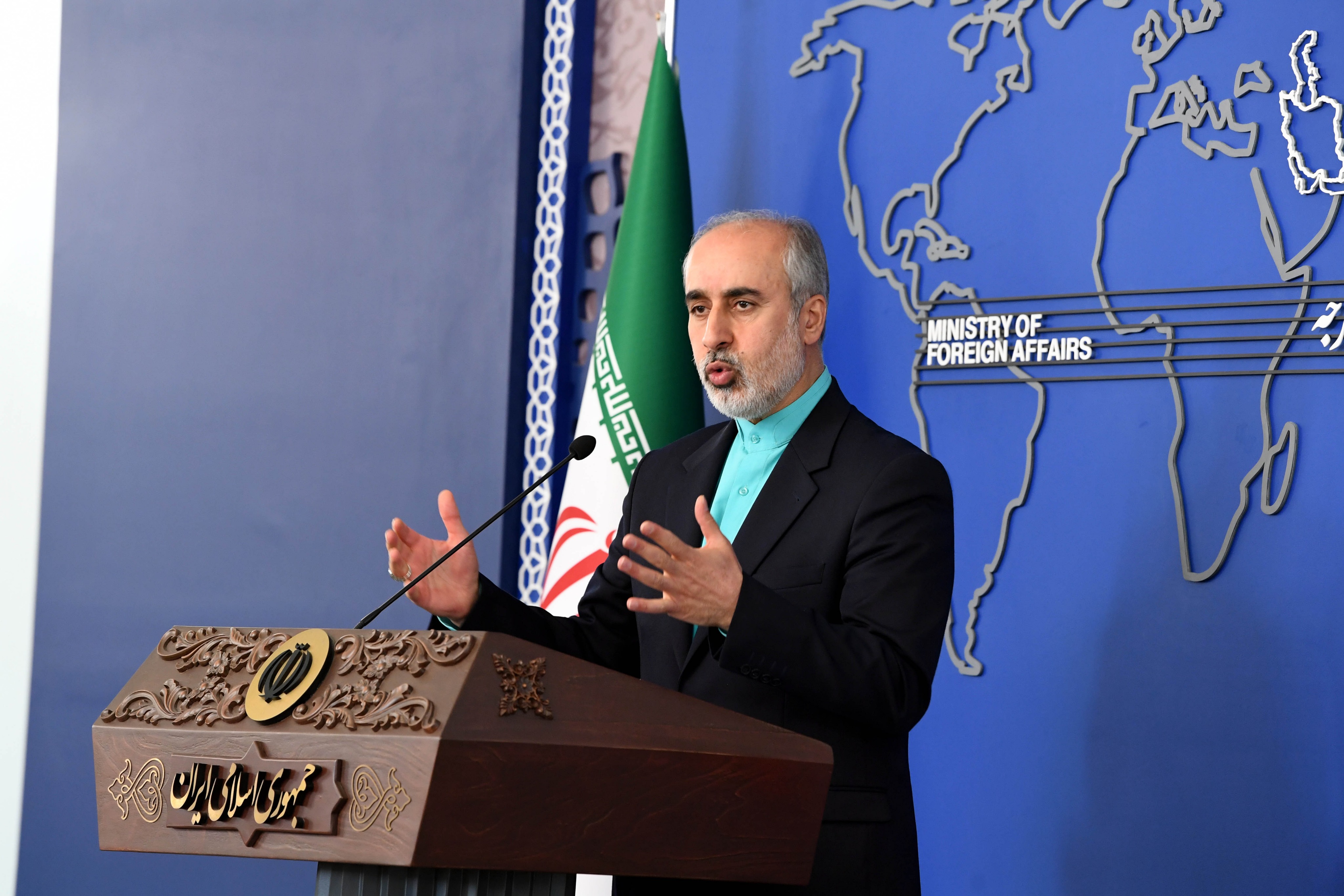 4月17日,在伊朗首都德黑兰,伊朗外交部发言人卡纳尼在例行记者会上说,伊朗总统莱希与沙特阿拉伯国王萨勒曼已互相邀请对方访问各自国家。新华社记者 沙达提摄